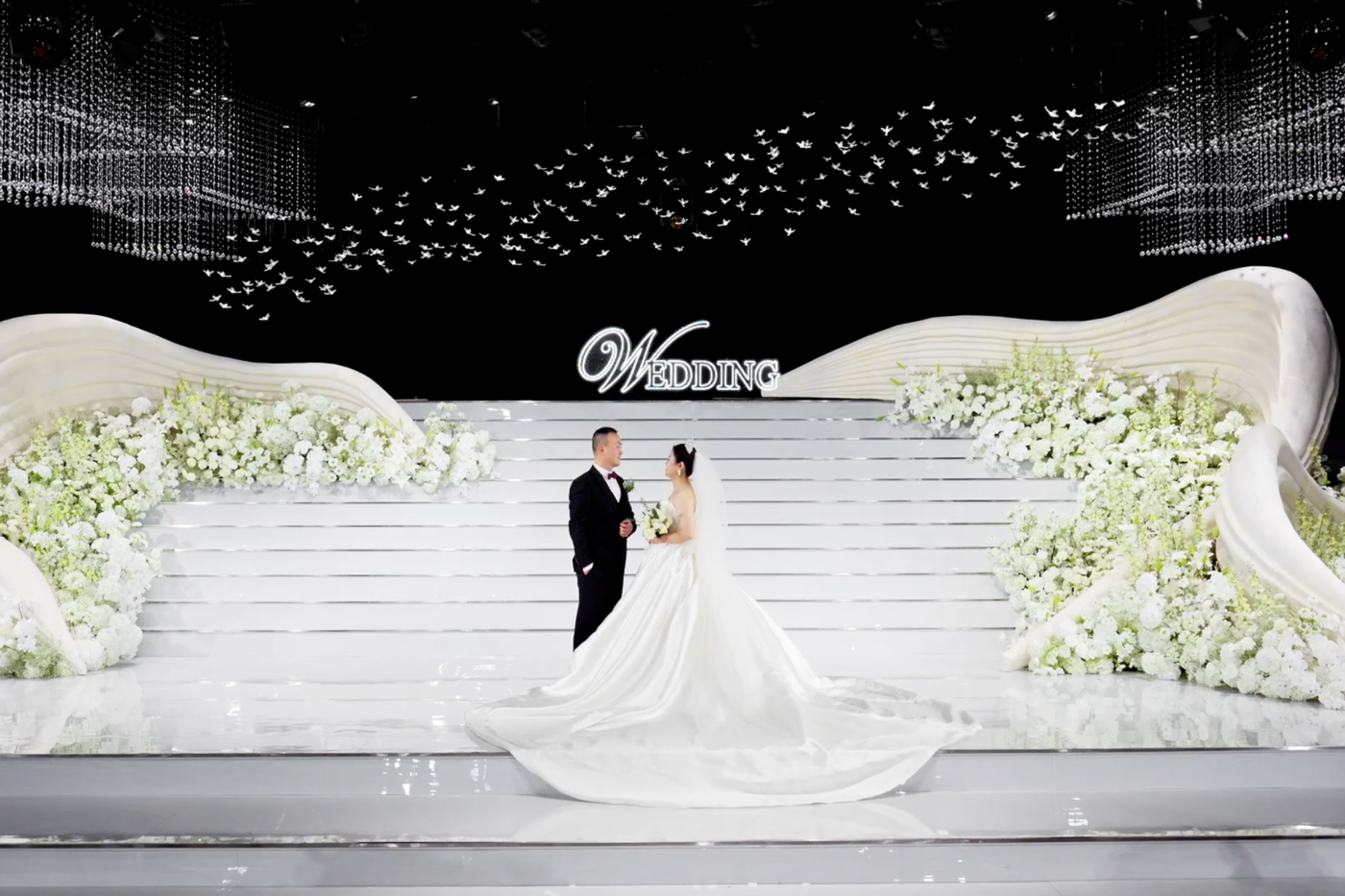 【婚礼预告】细碎如星光的光影倾洒在 偌大的婚宴厅 一眼沦陷的温暖与浪漫 让您们在这里 抒写着属于彼此的故事 ·[更多…]